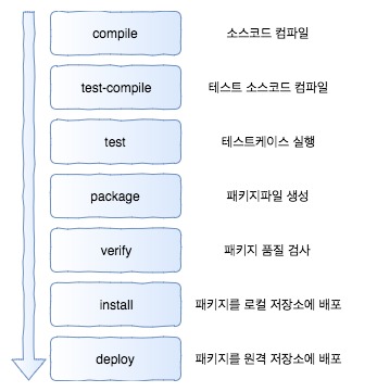 빌드 툴로 많이 알려진 메이븐은 빌드 툴이라기 보다는 프로젝트 관리 툴이라고 지칭해야 한다.메이븐은 소스코드로부터 배포 가능한 산출물을 빌드할 뿐만 아니라, 의존성 관리, 패키징, 문서화, 자동화 테스트, 각종 리포팅, 배포 등 여러가지 기능을 지원한다.메이븐에서 지원하는 기능을 사용하기 위해서는 pom.xml이라는 파일에 사용할 기능에 대해서 명시해야한다.메이븐의 기본 구조는 아래와 같다.